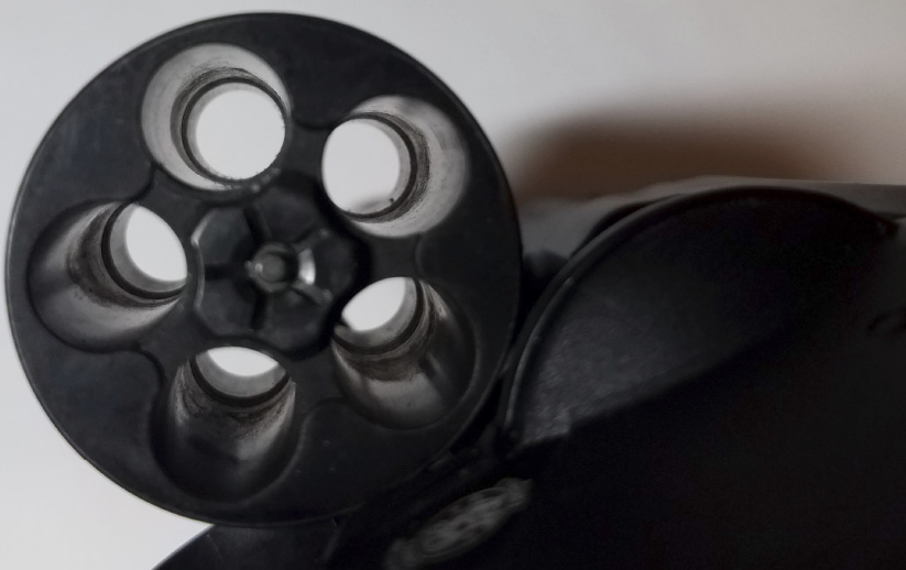 If you are not reloading the gun at this time, then close the cylinder and rotate it slightly until it locks (clicks) in place.