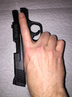 8. Keeping the barrel pointed in a safe direction, visually inspect the chamber to ensure it is empty. Also check with your fingers just to be sure